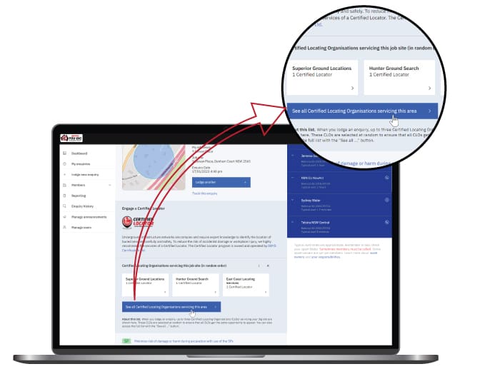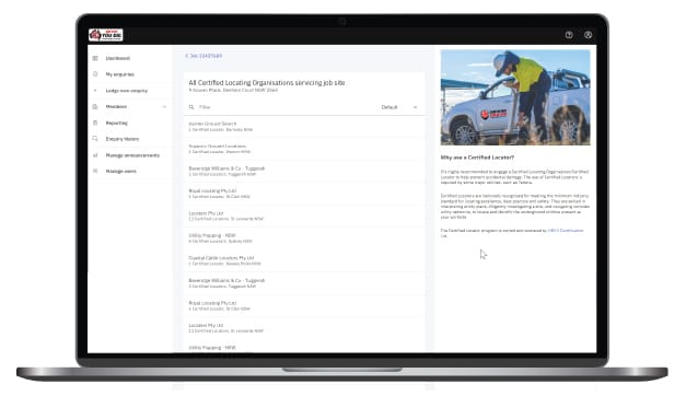 As part of BYDA’s commitment to improving the service to achieve its vision of “Zero Damage, Zero Harm”, there has been a recent improvement to our user experience. BYDA has now added a new Certified Locating Organisation (CLO) feature to its referral service. This feature is funded by BYDA to support and promote safe digging practices. BYDA has worked with DCL to develop this added-value feature with the aim of making it easier for users, contractors and construction companies to find CLOs. Therefore, users can now view CLOs after lodging their enquiry based on their job site location.